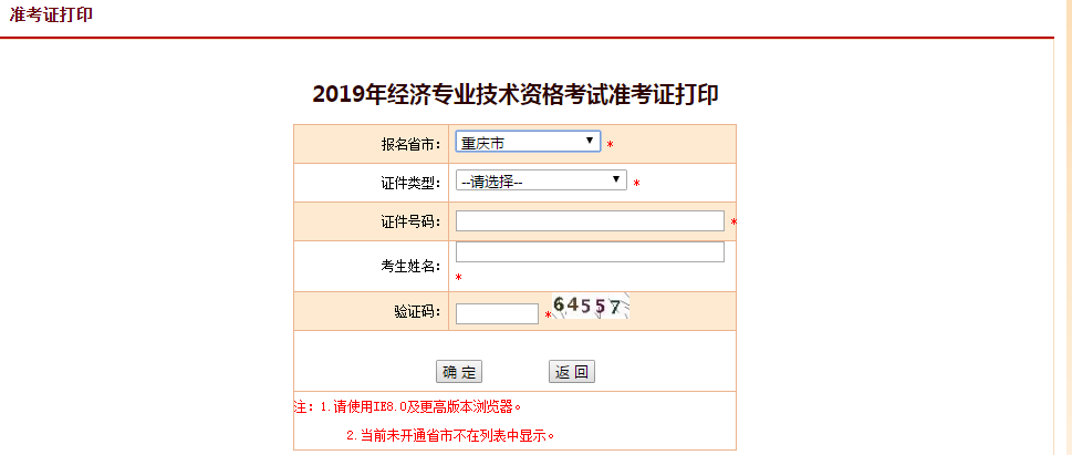 重慶2019年中級經(jīng)濟師考試準考證打印入口