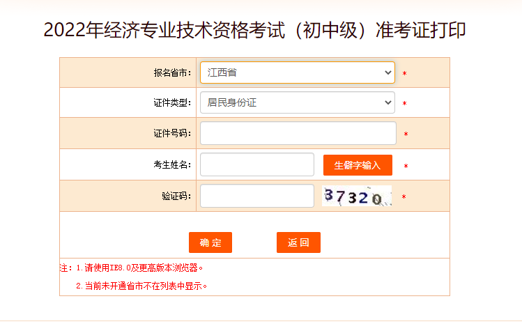 江西2022年中級經(jīng)濟師準考證打印入口已開放