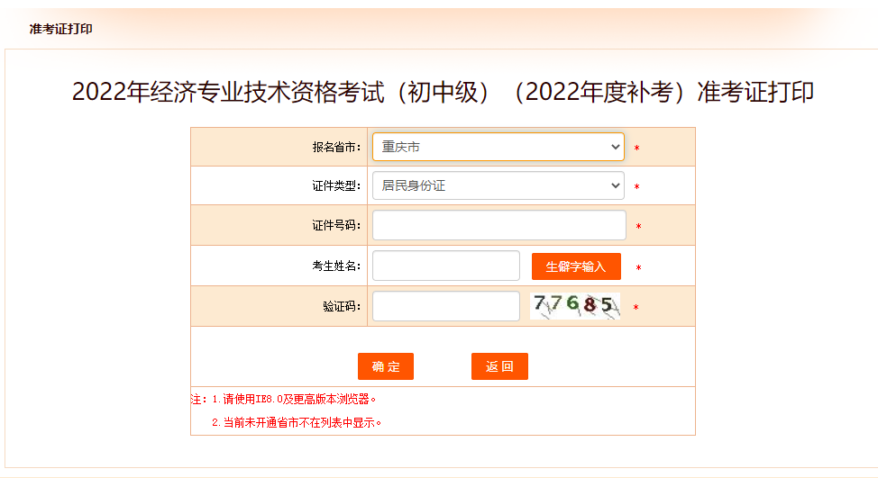 重慶2022年中級經(jīng)濟師補考考試準考證打印入口已開啟