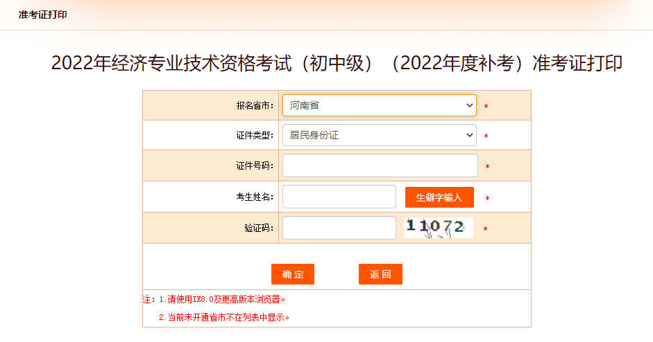 河南2022年中級經(jīng)濟師補考準考證打印官方入口已開放