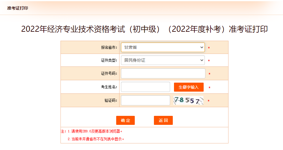 甘肅省2022年度中級經(jīng)濟(jì)師補考準(zhǔn)考證打印官方入口已開通