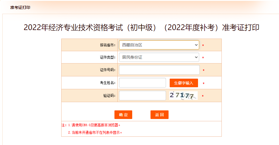 西藏2022年中級(jí)經(jīng)濟(jì)師補(bǔ)考準(zhǔn)考證打印官方入口已開(kāi)放