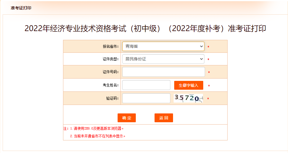 青海省2022年中級經濟師補考準考證打印入口已經開啟