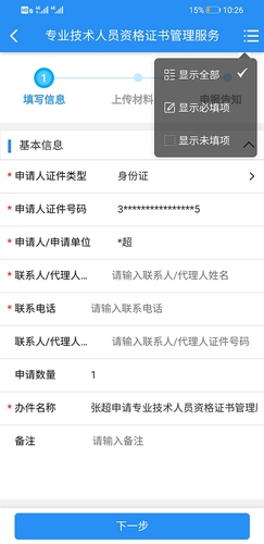 4.進入界面點擊右上角選擇“顯示全部”(備注中請注明領(lǐng)取何種專業(yè)技術(shù)資格證書。)