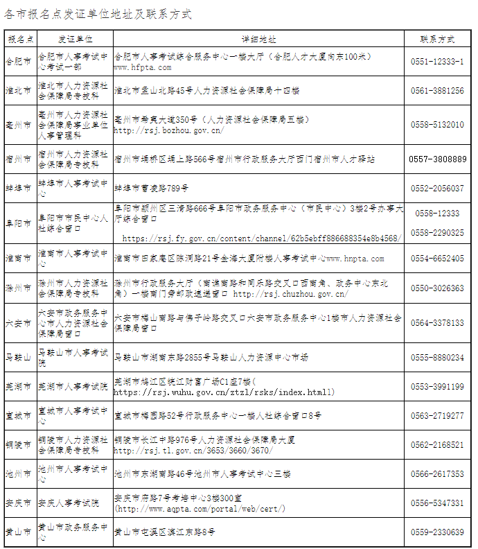 附:各市報(bào)名點(diǎn)發(fā)證單位地址及聯(lián)系方式