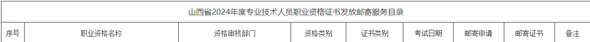 山西省2024年度專業(yè)技術(shù)人員職業(yè)資格證書發(fā)放郵寄服務(wù)目錄