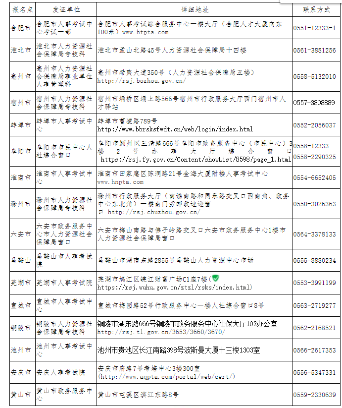 附:各市報(bào)名點(diǎn)發(fā)證單位地址及聯(lián)系方式