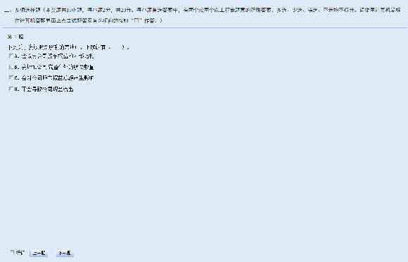 多項(xiàng)選擇題答題時(shí),考生直接用鼠標(biāo)點(diǎn)擊備選項(xiàng)中認(rèn)為正確的所有選項(xiàng)前的按鈕即可。如需撤銷(xiāo)已經(jīng)選中的選項(xiàng),再次點(diǎn)擊該選項(xiàng)前的按鈕即可。