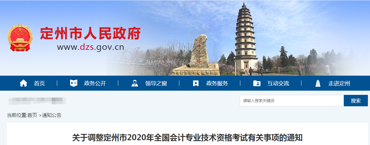 關于調(diào)整定州市2020年全國會計專業(yè)技術資格考試有關事項的通知