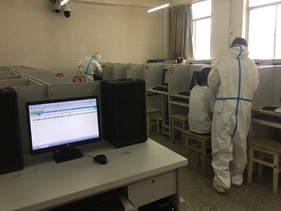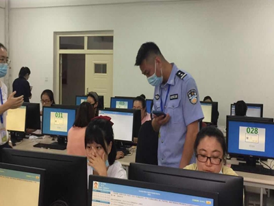 五是細(xì)化入場(chǎng)檢測(cè)流程。設(shè)立三個(gè)入場(chǎng)檢測(cè)環(huán)節(jié),每個(gè)環(huán)節(jié)明確崗位分工,責(zé)任落實(shí)到人。采取人臉識(shí)別體溫檢測(cè)系統(tǒng)、額溫槍等設(shè)備實(shí)施檢測(cè)體溫工作;財(cái)政部門工作人員查驗(yàn)考生有效身份證、準(zhǔn)考證、新冠肺炎防控和鼠疫防控健康碼;巡考人員、網(wǎng)絡(luò)安全保衛(wèi)支隊(duì)、治安大隊(duì)工作人員實(shí)時(shí)巡考,并使用警務(wù)通對(duì)考生身份證進(jìn)行比對(duì),嚴(yán)防替考及高科技作弊行為發(fā)生,并將相關(guān)疫情風(fēng)險(xiǎn)排除在考場(chǎng)之外,為考試安全提供有效保障。