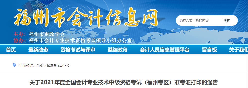 關(guān)于2021年度全國會計專業(yè)技術(shù)中級資格考試(福州考區(qū))準考證打印的通告