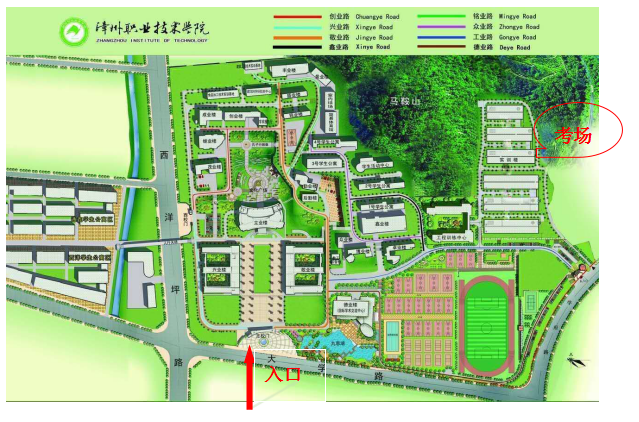 3、漳州職業(yè)技術學院考試地點:福建省漳州市大學路二號漳州職業(yè)技術學院東區(qū)學訓樓四號樓,考生由學校(華陽體育館北門正對面)進出校園,其他校門不予進出。