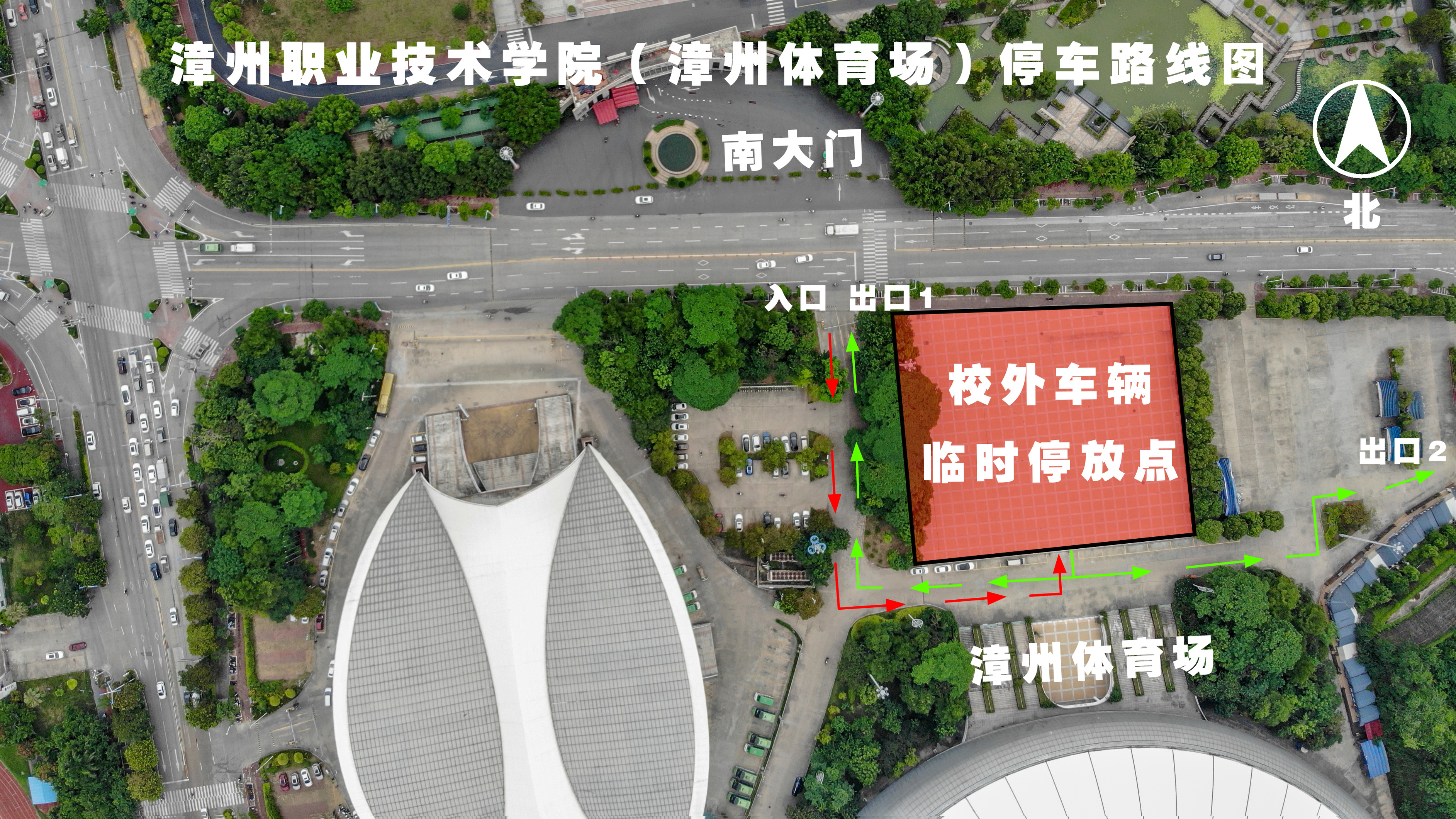 汽車統(tǒng)一停放在漳州市體育場內,具體位置(如下圖):