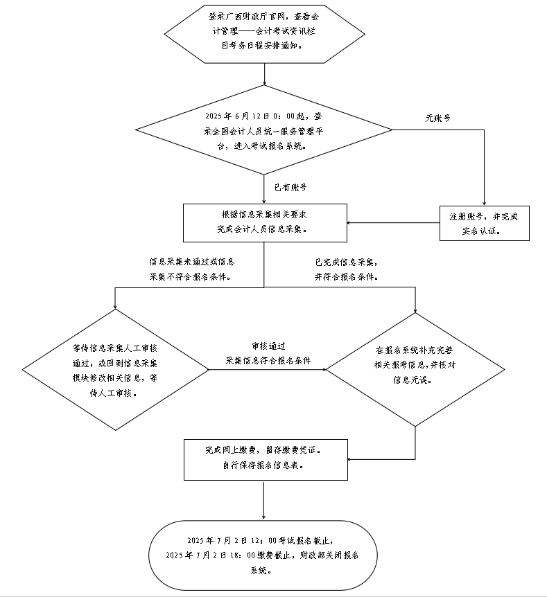 2025年度全國會(huì)計(jì)專業(yè)技術(shù)中級(jí)資格考試廣西考區(qū)報(bào)名流程圖