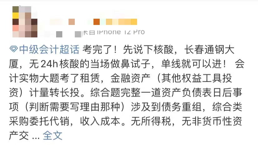 部分考生表示,在吉林省長春市的長春通鋼大廈沒有24小時(shí)核酸檢測陰性證明,單線就可以進(jìn)!但是東奧會計(jì)在線還是建議考生根據(jù)本地政策要求做好核酸檢測,避免無法參加考試的情況發(fā)生!