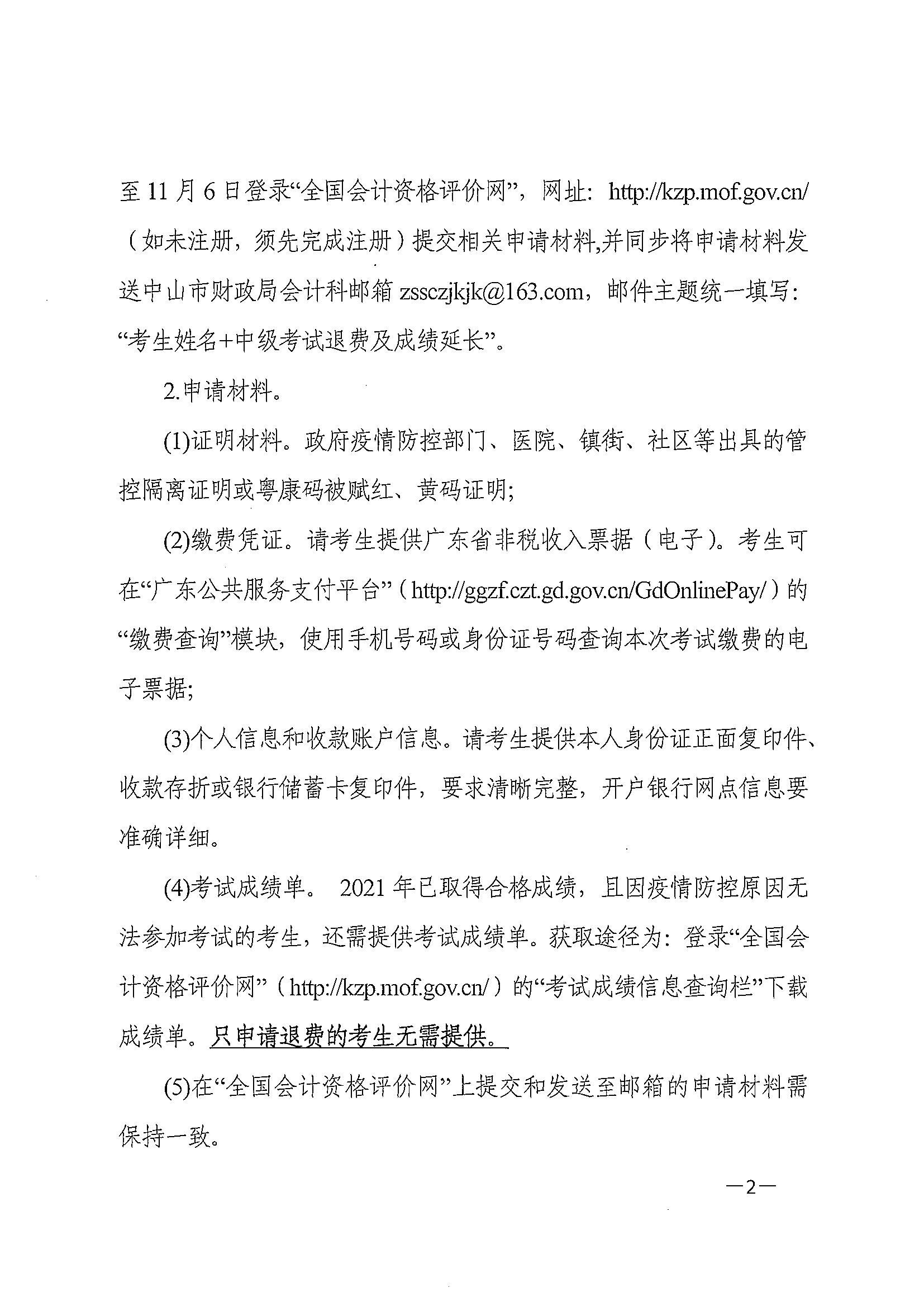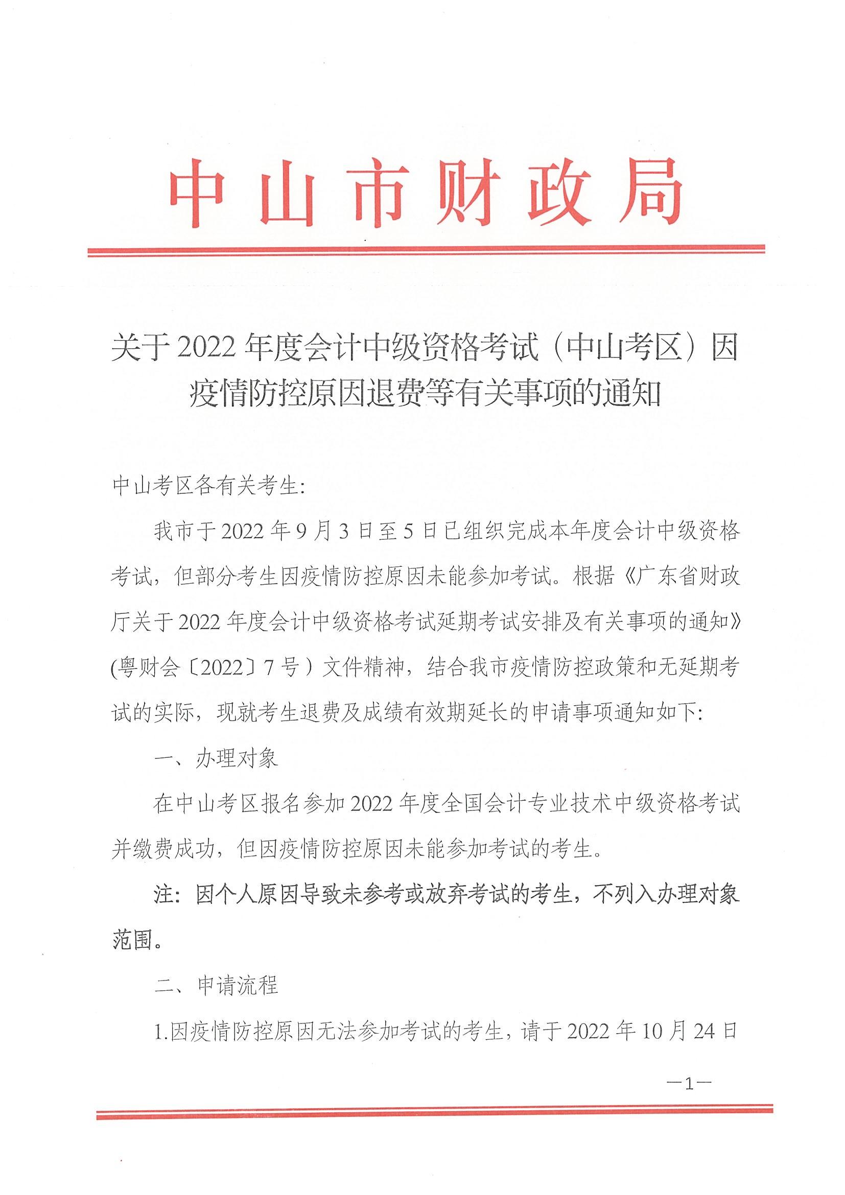 廣東省中山市2022年中級(jí)會(huì)計(jì)考試退費(fèi)及有關(guān)事項(xiàng)的通知