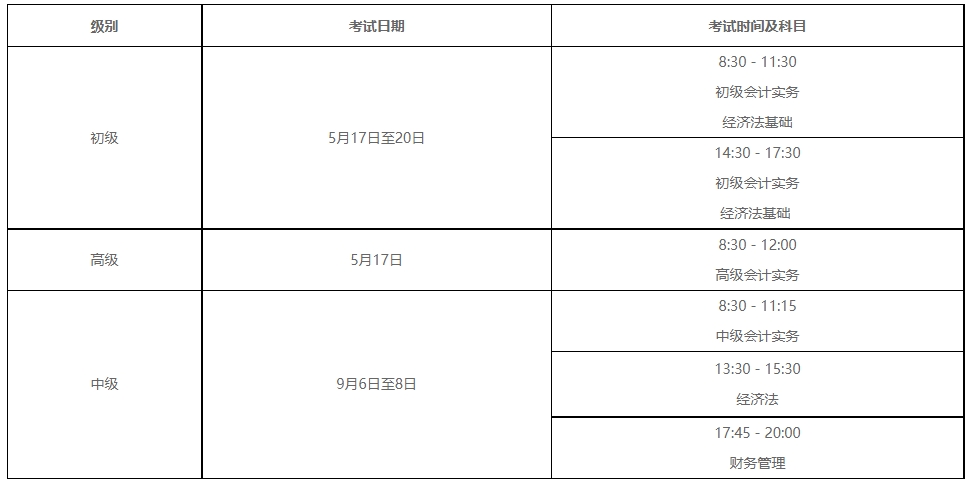 (一)初級(jí)、高級(jí)會(huì)計(jì)資格考試考務(wù)日程。