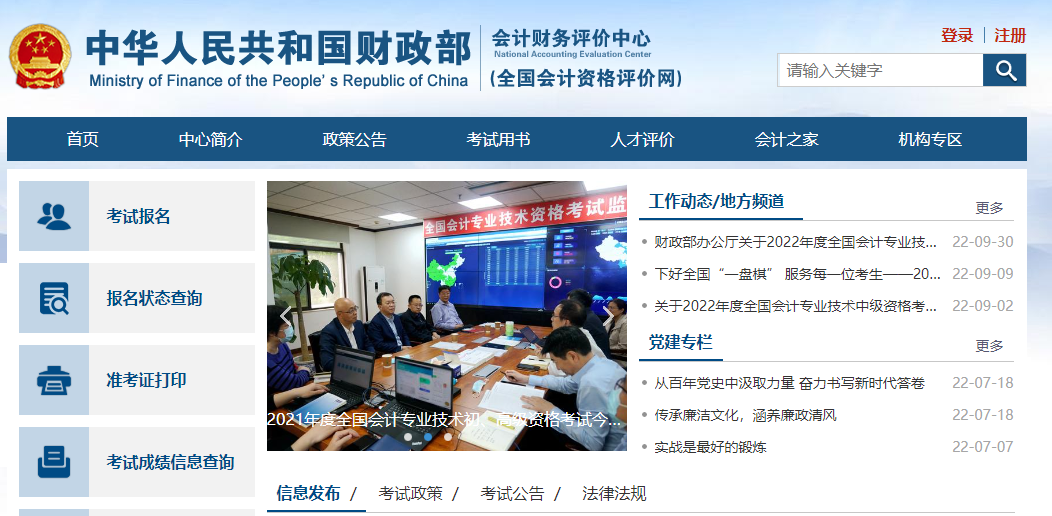 ①進(jìn)入全國會計資格評價網(wǎng),點(diǎn)擊首頁的【考試成績信息查詢】。(http://kzp.mof.gov.cn/)