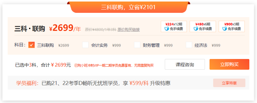 ① 超高價值,驚爆價格,現(xiàn)在購買中級會計師30天終極特訓(xùn)VIP每科僅需¥1000元,三科聯(lián)購還能再省¥2000,已購21、22考季D班的同學(xué)還有專屬升級特惠價,真的是超劃算呢!