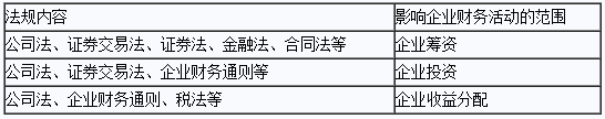 國家相關(guān)法律法規(guī)按照對財務(wù)管理內(nèi)容的影響情況可以分如下幾類: