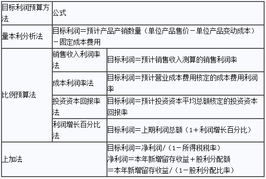 目標利潤預算方法