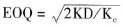 當(dāng)F1、K 、D 、U 、F2 、Kc 為常數(shù)時(shí),TC 的大小取決于Q 。為了求出TC 的極小值,對其進(jìn)行求導(dǎo)演算,可以得出經(jīng)濟(jì)訂貨基本模型,公式如下: