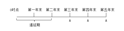 在計(jì)算終值時(shí),所有的現(xiàn)金流量都要計(jì)算到未來的某個(gè)時(shí)點(diǎn),比如5期,遞延期是2,從第3年年末開始付款年金A