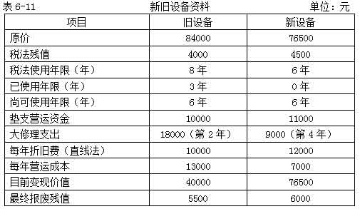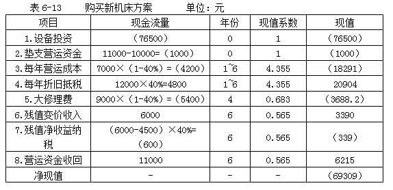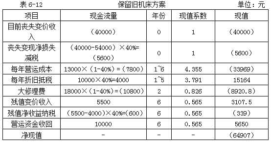 教材【例6-13】宏基公司現(xiàn)有一臺(tái)舊機(jī)床是三年前購進(jìn)的,目前準(zhǔn)備用一新機(jī)床替換。該公司所得稅率40%,資本成本率為10%,其余資料如表6-11所示。