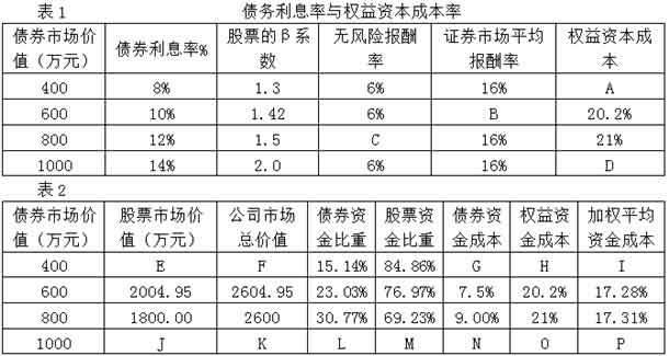 。2)填寫表2公司市場價值與企業(yè)綜合資本成本中用字母表示的空格。
