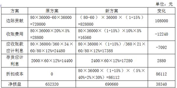 (1)計算改變信用政策前、后邊際貢獻(xiàn)、收賬費(fèi)用、應(yīng)收賬款占用資金應(yīng)計利息、存貨占用資金應(yīng)計利息、現(xiàn)金折扣成本的變化以及改變信用政策的凈損益。