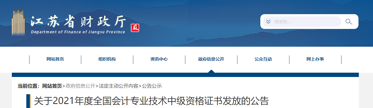 江蘇省2021年中級會計師考試合格證書領(lǐng)取通知