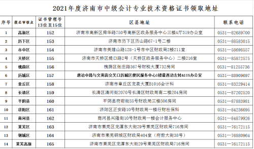 山東省濟南市2021年中級會計師證書領(lǐng)取通知