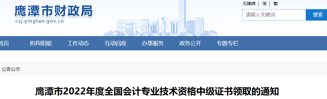 鷹潭市2021年度全國(guó)會(huì)計(jì)專業(yè)技術(shù)資格中級(jí)證書領(lǐng)取的通知