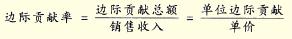單位邊際貢獻=單價一單位變動成本=單價×邊際貢獻率