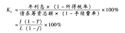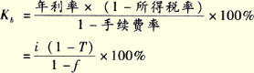 式中:Kb表示銀行借款資本成本率;i表示銀行借款年利率;f表示籌資費(fèi)用率;T表示所得稅率。