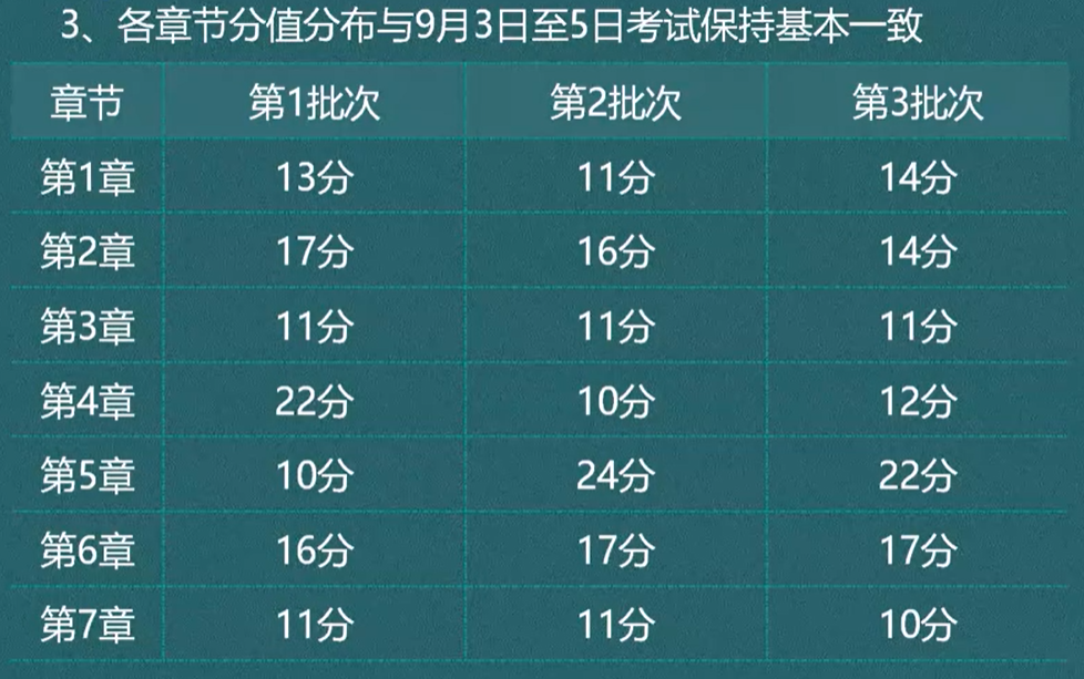 針對2022年9月份順利進(jìn)行的中級會計考試《經(jīng)濟(jì)法》這一科目的考試情況,黃潔洵老師幫助考生整理了三個考試批次的各章節(jié)分值分布的情況,這對于延考的考生可謂是一大福音,考生可以根據(jù)此表內(nèi)容清楚的了解各章節(jié)考查的重點,有所側(cè)重的進(jìn)行備考。