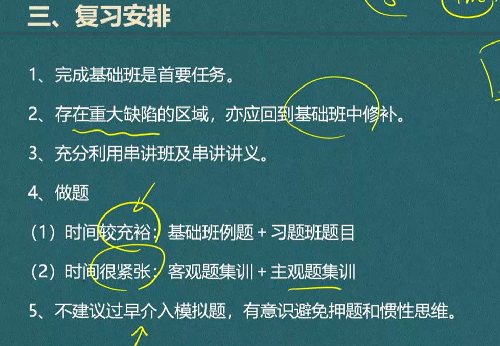 如果考生感覺到對某些內(nèi)容的學(xué)習(xí)掌握不牢,有重大的缺陷,強(qiáng)烈建議考生不要純靠刷題來改變現(xiàn)狀,利用教材和輔導(dǎo)課程將知識回顧一遍才是硬道理!跟著老師的思路去聽課,認(rèn)真分析理解內(nèi)容,比自己一個人埋頭苦學(xué),死記硬背的效率要高很多!