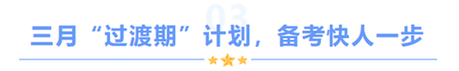 不過,考試大綱畢竟只是“綱領(lǐng)”,沒有具體的知識細(xì)則,部分第一次參考、沒有時間或者沒有精力對大綱進(jìn)行深入分析的考生,可能依舊面臨著“怎么學(xué)”的問題。為此,東奧幫助考生制訂了一份3月備考的“過渡期”計劃,感興趣的考生,快來領(lǐng)取!