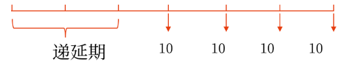 ③遞延年金(延期年金):在第二期或第二期以后收付款的年金。遞延年金要注意確定遞延期是多少,這里要結(jié)合普通年金的概念來看,下圖,是在第三年年末進(jìn)行收付款的,所以遞延期是2。