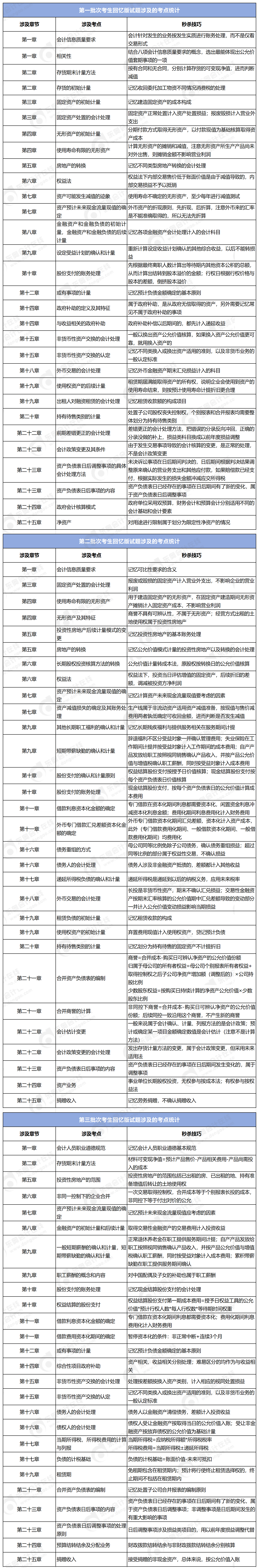 第一批次考查的章節(jié)為:第三章、六章、十一章、十三章、十六章、十七章以及第二十一章;