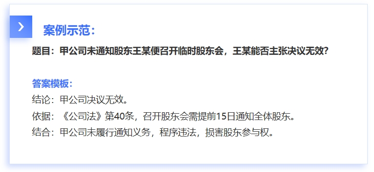 簡答題(3題) | 10分鐘/題 | 按“結(jié)論→法條→分析”模板寫 | |