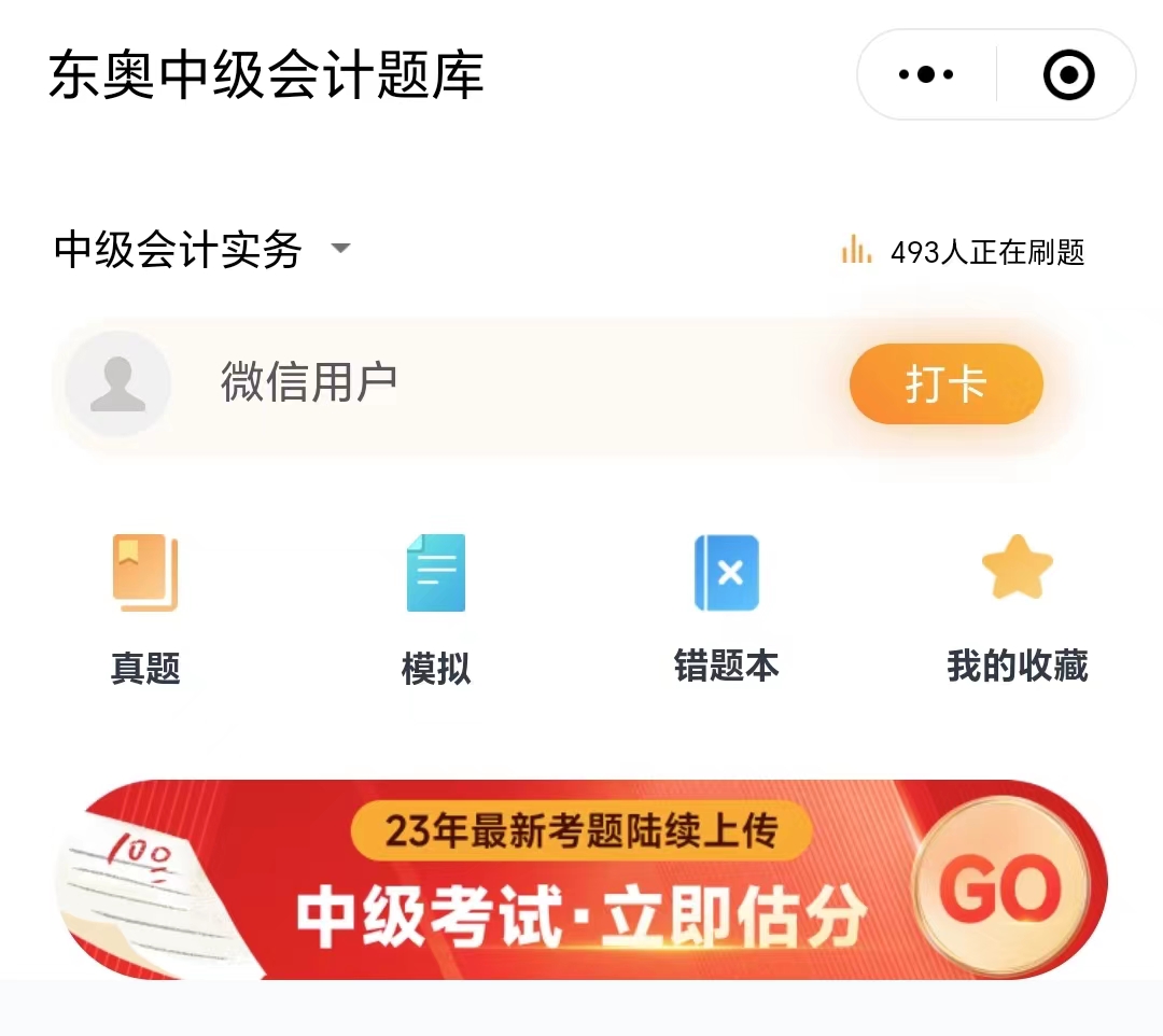 | 入口一:考生可以進(jìn)入“東奧中級會(huì)計(jì)題庫”小程序,進(jìn)行預(yù)約估分!具體估分預(yù)約步驟如下: