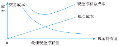 現(xiàn)金的機(jī)會(huì)成本和交易成本兩條曲線交叉點(diǎn)所對應(yīng)的現(xiàn)金持有量,就是最佳現(xiàn)金持有量。