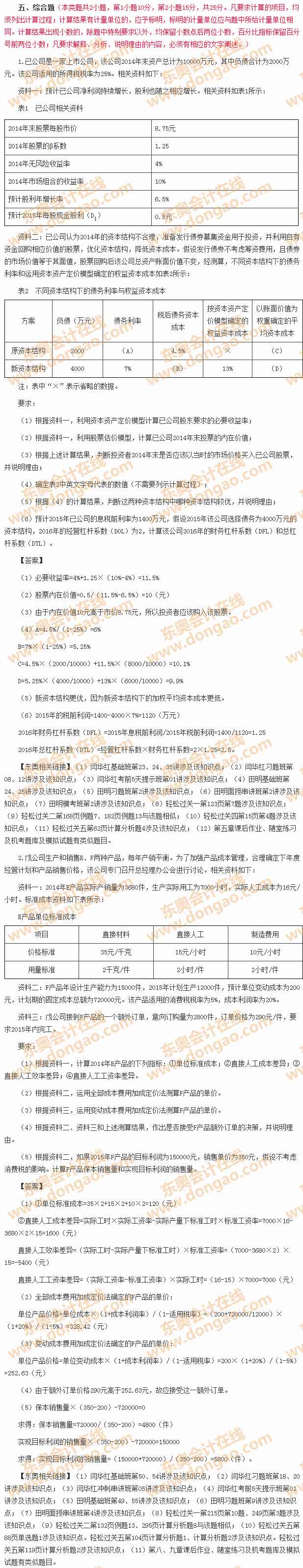 2015年中級(jí)會(huì)計(jì)職稱考試之《財(cái)務(wù)管理》考試真題及答案解析