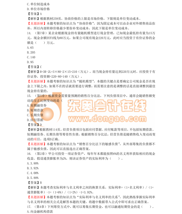2016中級會計(jì)職稱《中級財務(wù)管理》真題及答案解析(考生回憶版)