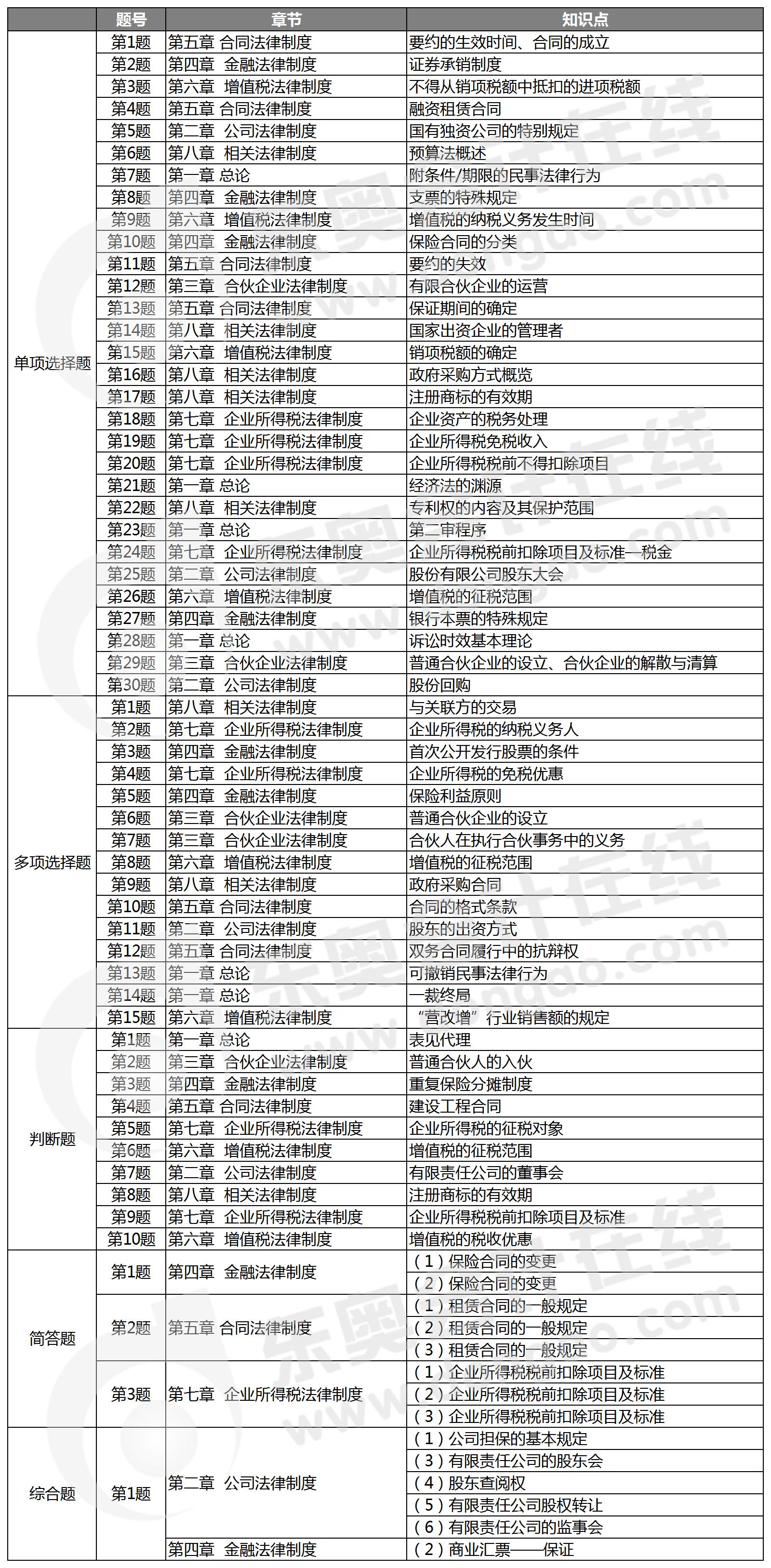 主觀題考查的知識(shí)點(diǎn)比較常規(guī)且集中。有限責(zé)任公司的股東會(huì)、監(jiān)事會(huì)、有限責(zé)任公司股權(quán)轉(zhuǎn)讓、股東查閱權(quán)、票據(jù)保證、租賃合同的一般規(guī)定、企業(yè)所得稅稅前扣除項(xiàng)目及標(biāo)準(zhǔn)等都是比較重要的知識(shí)點(diǎn)。第四章保險(xiǎn)法律制度本批次出了一道簡(jiǎn)答題,有點(diǎn)出乎意料,但涉及考點(diǎn)保險(xiǎn)合同的變更,考生應(yīng)該不陌生,也是能拿到分?jǐn)?shù)的。