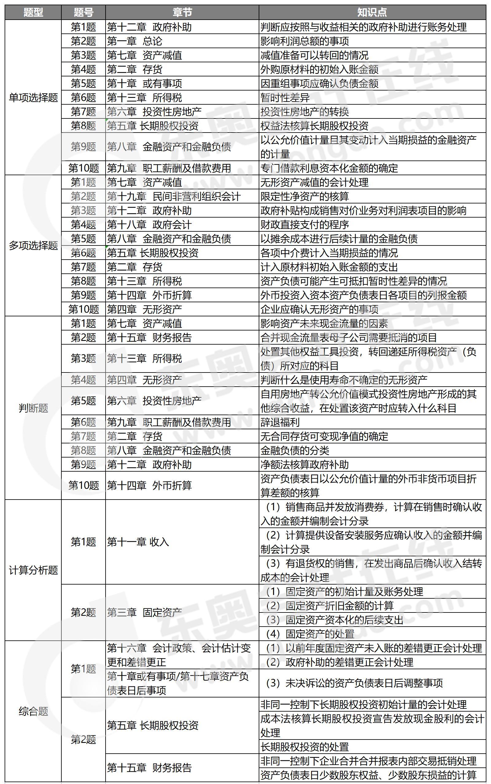 收入、長(zhǎng)期股權(quán)投資和企業(yè)合并,作為以往考試的重點(diǎn)章節(jié),結(jié)合出一道綜合題。以往年度曾經(jīng)作為主觀題考核過(guò)的第十六章 會(huì)計(jì)政策、會(huì)計(jì)估計(jì)變更和差錯(cuò)更正和第十七章 資產(chǎn)負(fù)債表日后事項(xiàng),在該批次試題中也考查了一道綜合題。