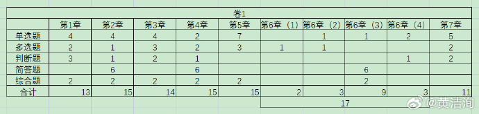 從黃潔洵老師整理的各章分值來(lái)看,本次考試考查的內(nèi)容是非常全面的,每一章節(jié)的分?jǐn)?shù)都在10分以上,建議后面考試的考生好好學(xué)習(xí)相關(guān)內(nèi)容。