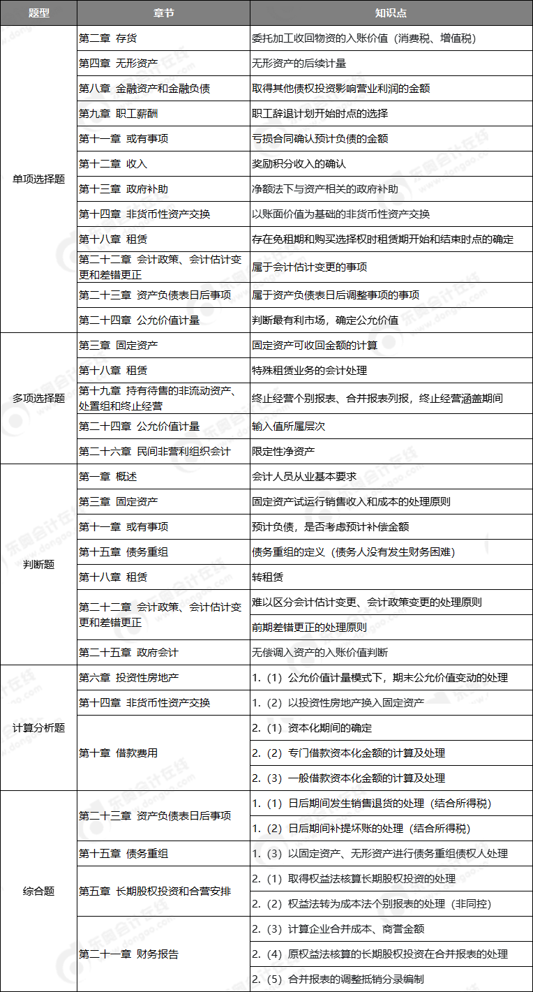 考題依然是秉持“重點(diǎn)恒重”和“逢新必考”原則,第六章 長期股權(quán)投資、第二十一章 財(cái)務(wù)報(bào)告、第二十三章 資產(chǎn)負(fù)債表日后事項(xiàng),屬于歷年考題的恒重點(diǎn)考點(diǎn),在本套試卷中以主觀題形式考查。