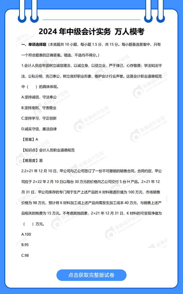 2024年中級會計考試萬人??紒砹耍?/span>點擊下圖獲取完整版試題!